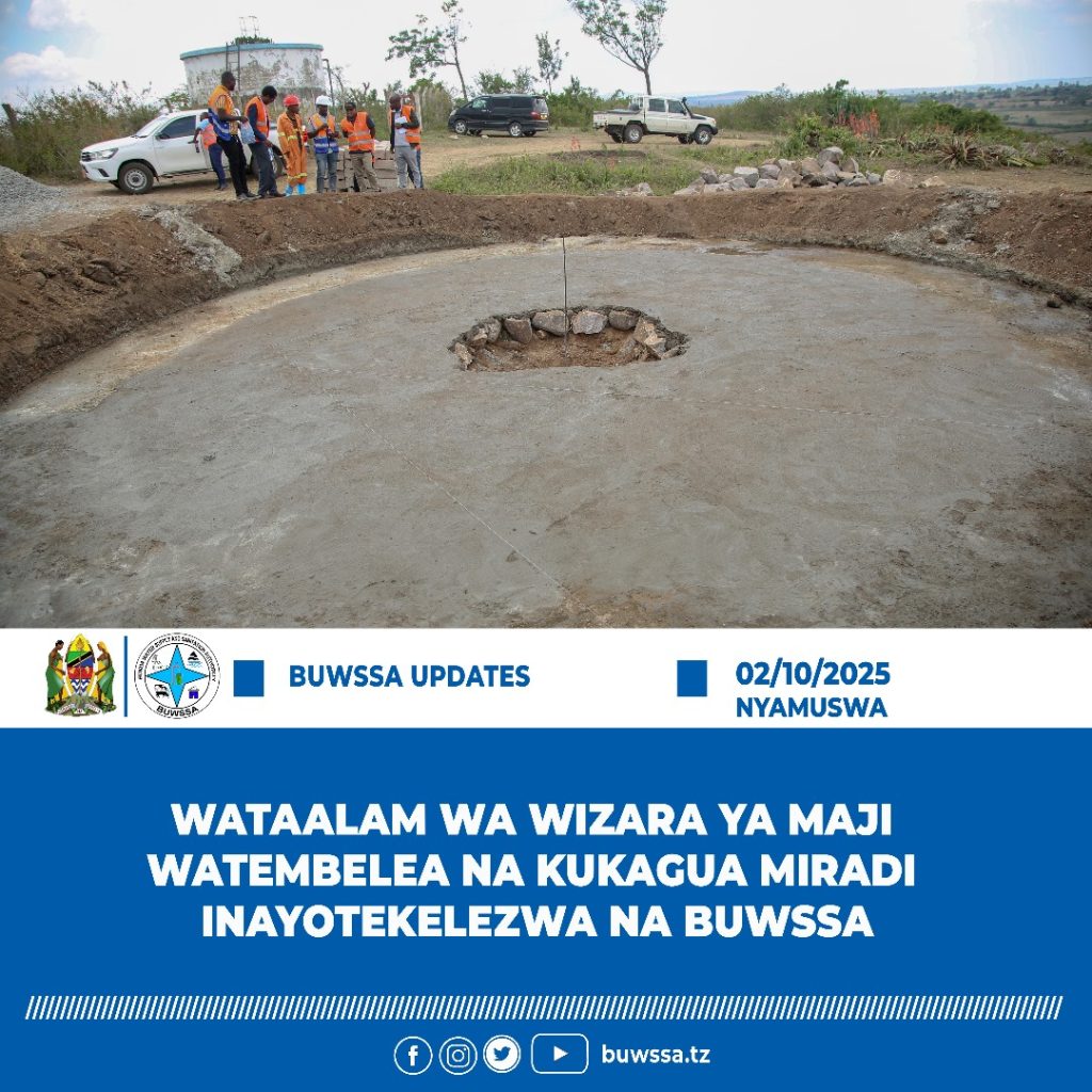Wataalam kutoka Wizara ya Maji na Mfuko wa Taifa wa Maji wamefanya ziara ya kikazi kutembelea na kukagua utekelezaji wa miradi ya maji inayosimamiwa na Mamlaka ya Majisafi na Usafi wa Mazingira Bunda (BUWSSA). Miradi iliyotembelewa mnamo tarehe 02 Oktoba 2025 na kufanyiwa tathmini ni Mradi wa Majisafi Nyamuswa, Mradi wa Majitaka Butakale na Mradi wa Ubadilishaji wa Bomba Migungani – Kaswaka ikiwa ni miradi inayofadhiliwa na Serikali ya Jamhuri ya Muungano wa Tanzania.